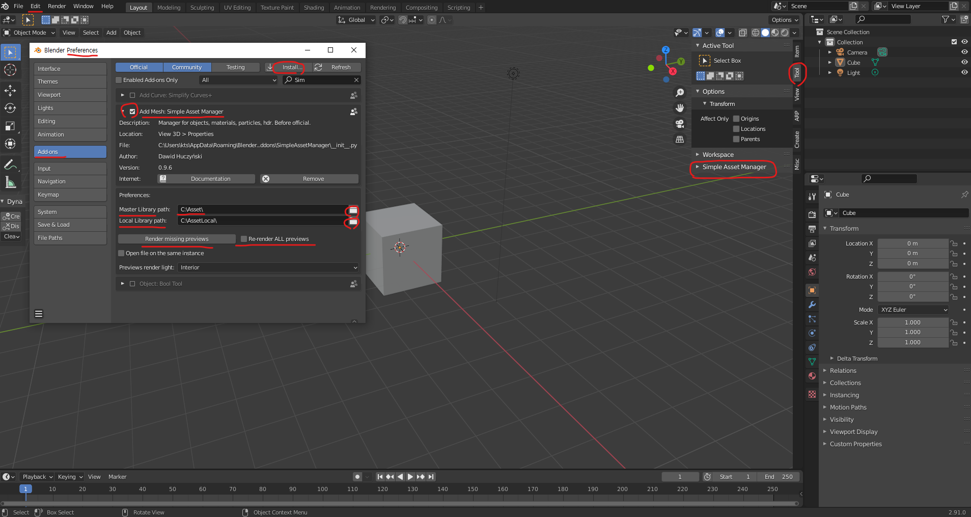블렌더 강좌 2.91 - 무료 애드온 - SIMPLE ASSET MANAGER - 캐공방TV