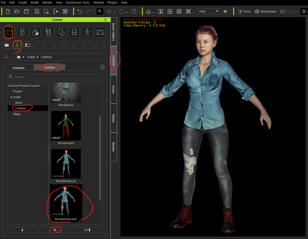 Project - Character - Custom - Avatar - Clothed - + 버튼을 클릭해서