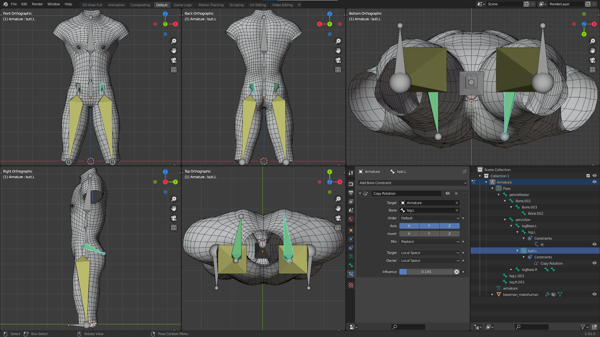보통 자동 리깅을 하면 펠비스에서 문제가 생겨서