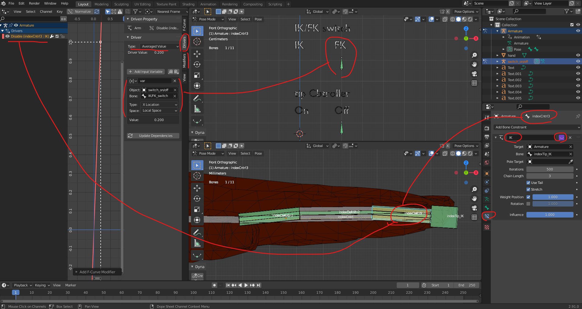 indexCntrl3 본의 IK 제약을 비활성으로 만듭니다.