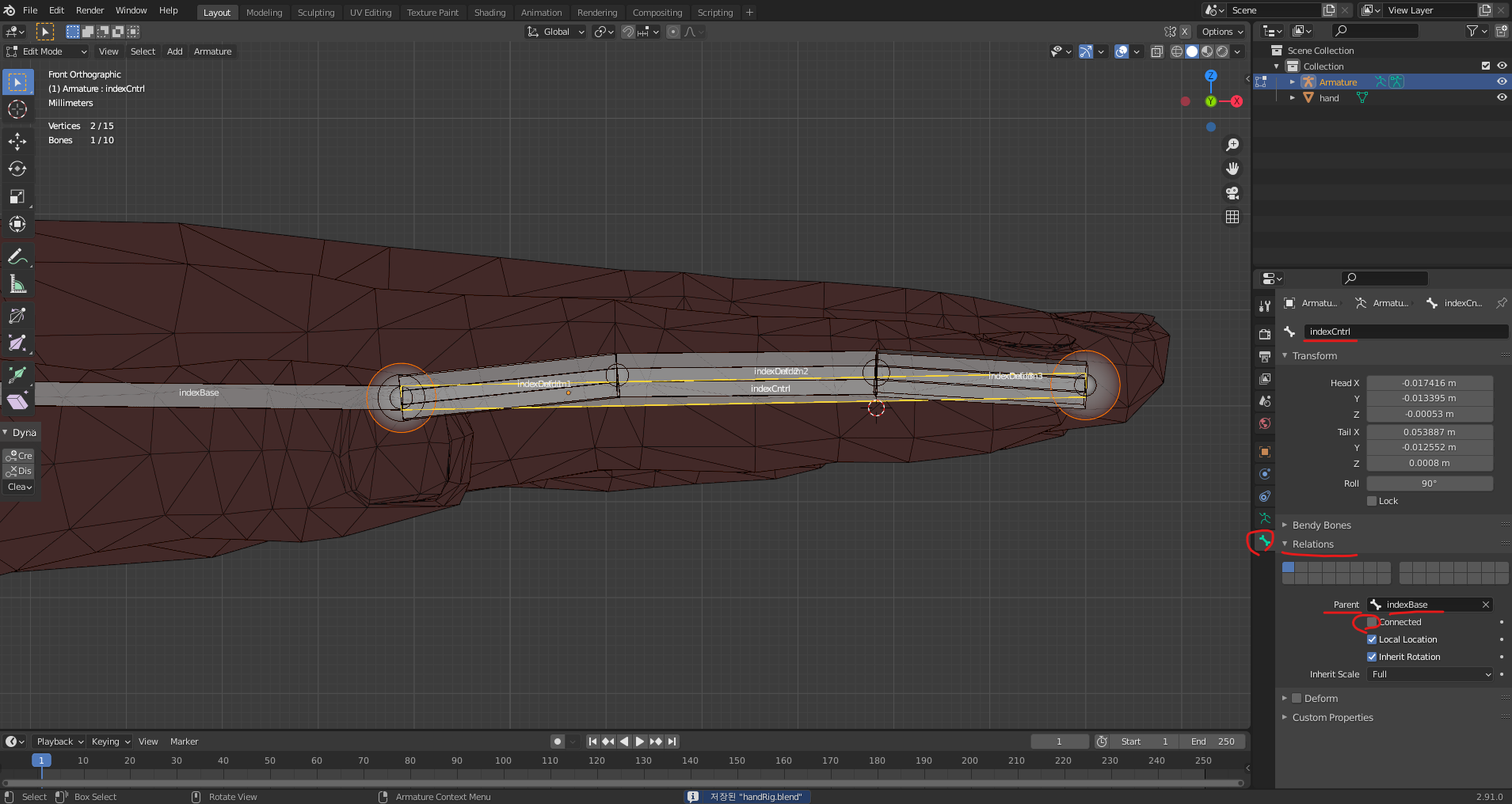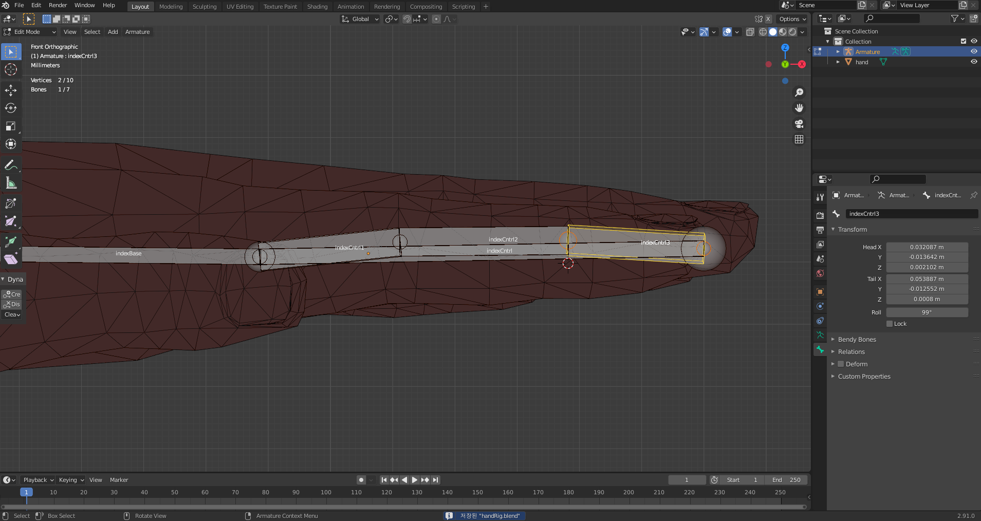 블렌더 강좌 2.91 - 손 리깅 - 실습
