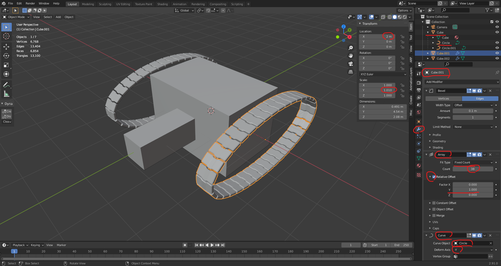 Cube.001 로 체인모양을 만들고