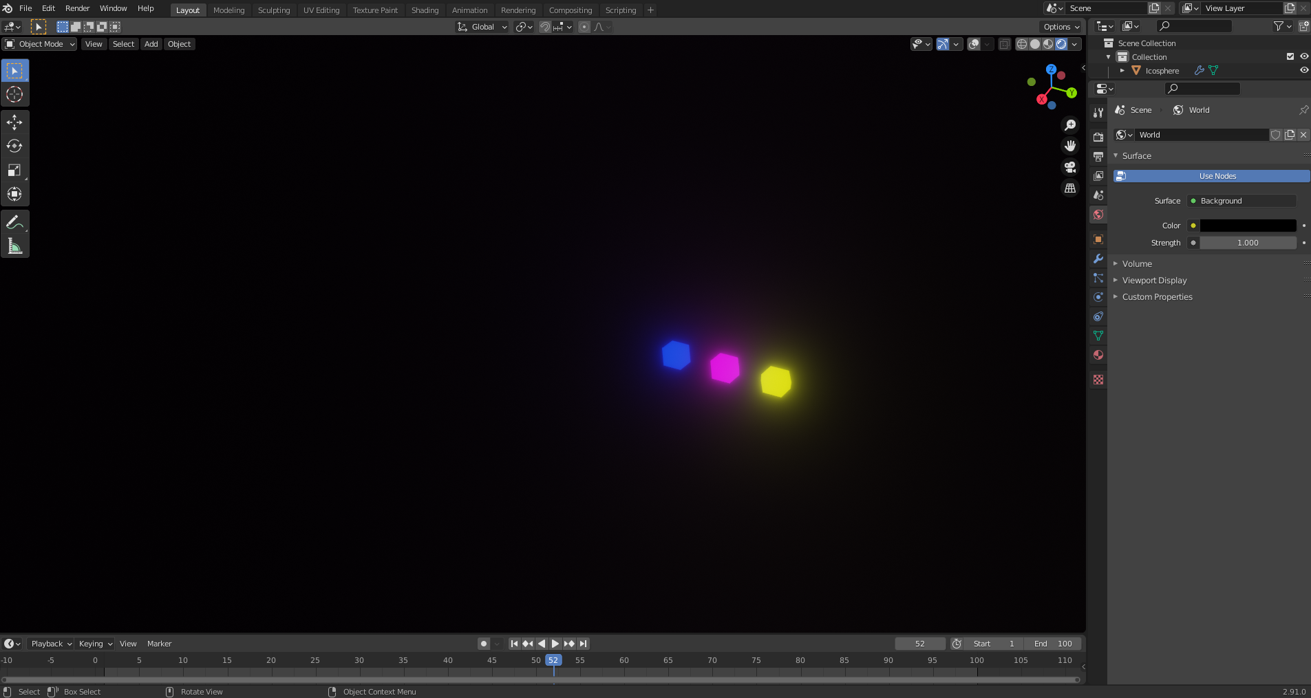 Ico sphere 를 추가하고