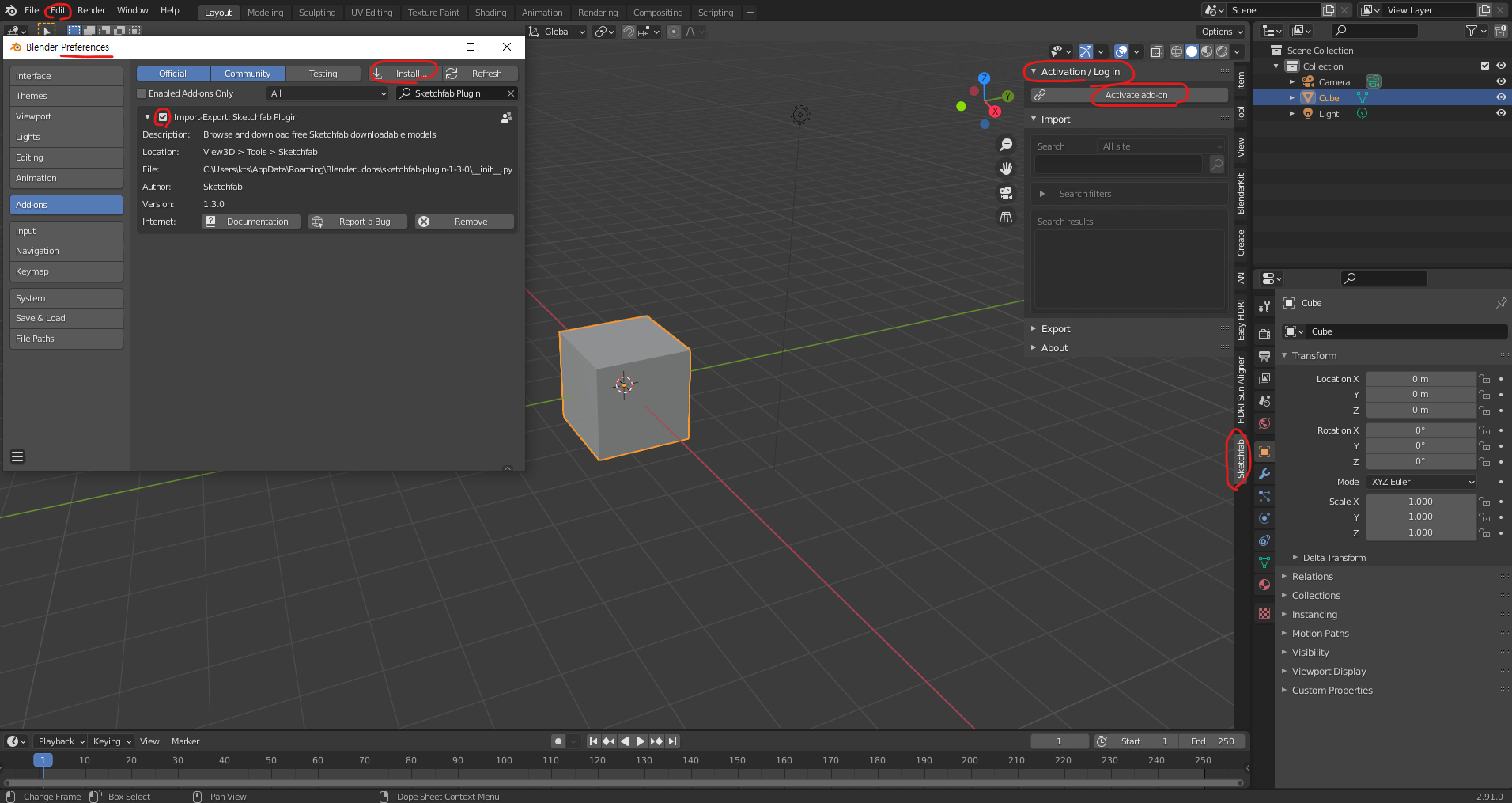 블렌더 강좌 2.91 - 무료 애드온 - sketchfab - 캐공방TV