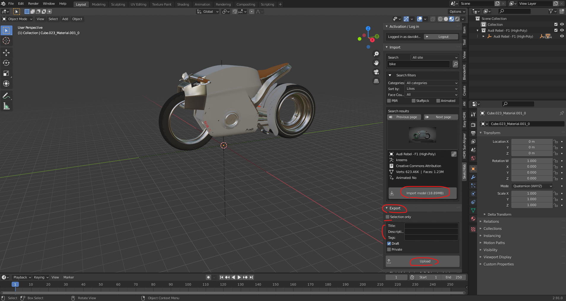 블렌더 강좌 2.91 - 무료 애드온 - sketchfab - 캐공방TV