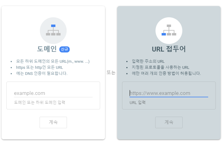 URL 접두어 유형을 선택하고