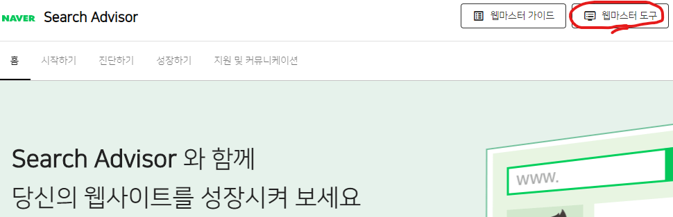 상단에 (웹마스터 도구) 클릭