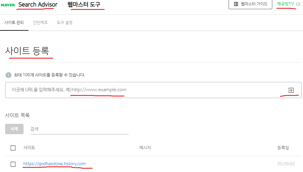 사이트 등록