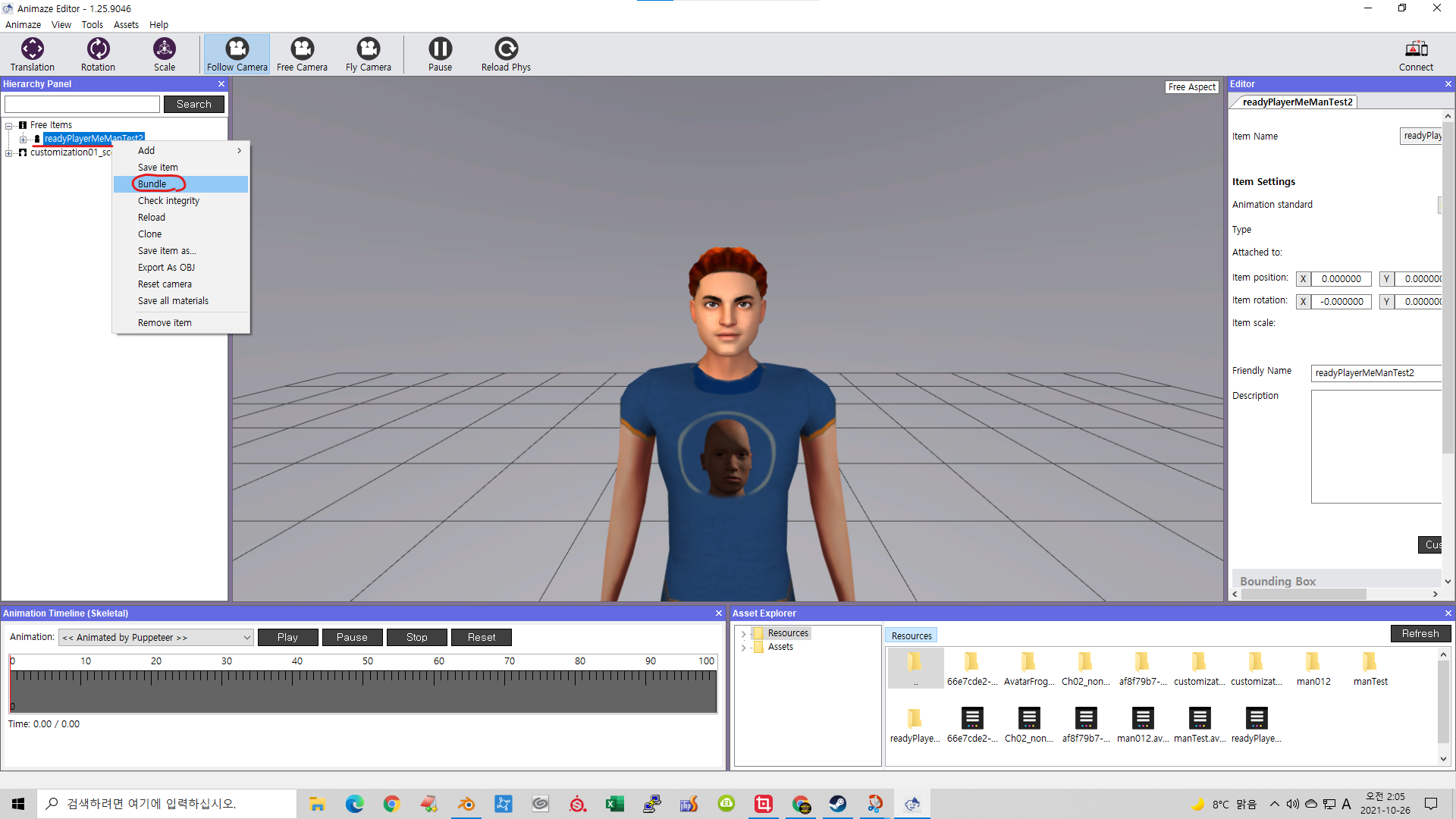 불러온 모델명에서 우측 마우스 클릭하여 팝업 메뉴를 띄우고 Bundle 을 선택해서