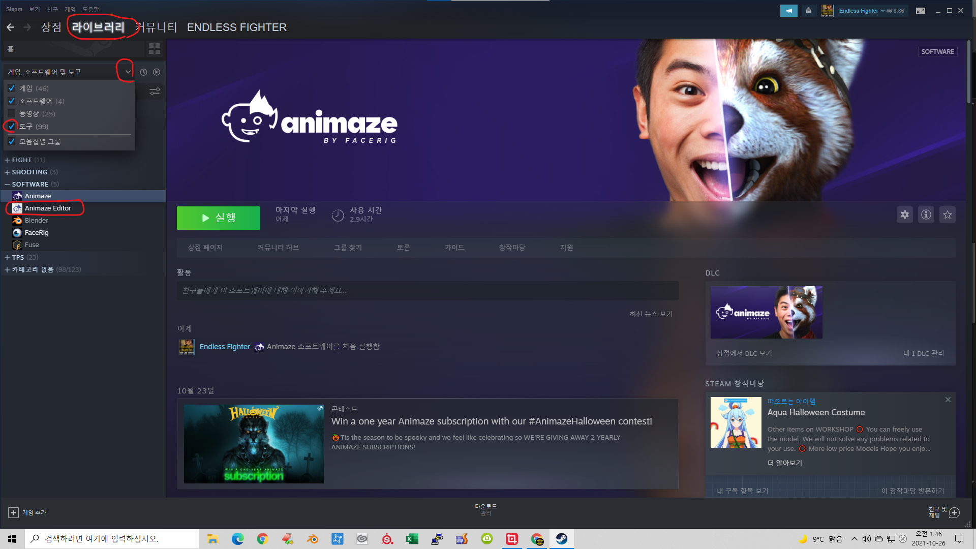 스팀 라이브러리에서 도구를 체크하면 Animaze Editor 를 추가로 설치해서