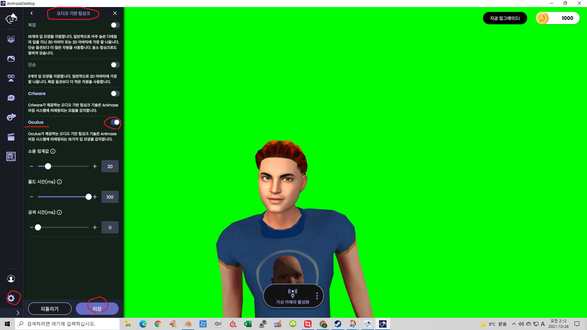 설정 화면 - 고급트래킹 구성 - 오디오 기반 립싱크 - Oculus 기술을 선택하고 저장합니다.