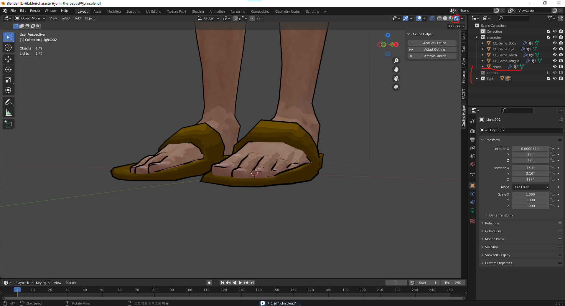 신발은 다른 캐릭터에서 이미 만든 것을 재사용해도 됩니다.
