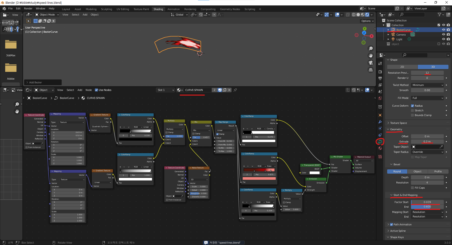 영어 강좌를 보고 스피드 라인 이펙트를 그대로 만들어 보았습니다.