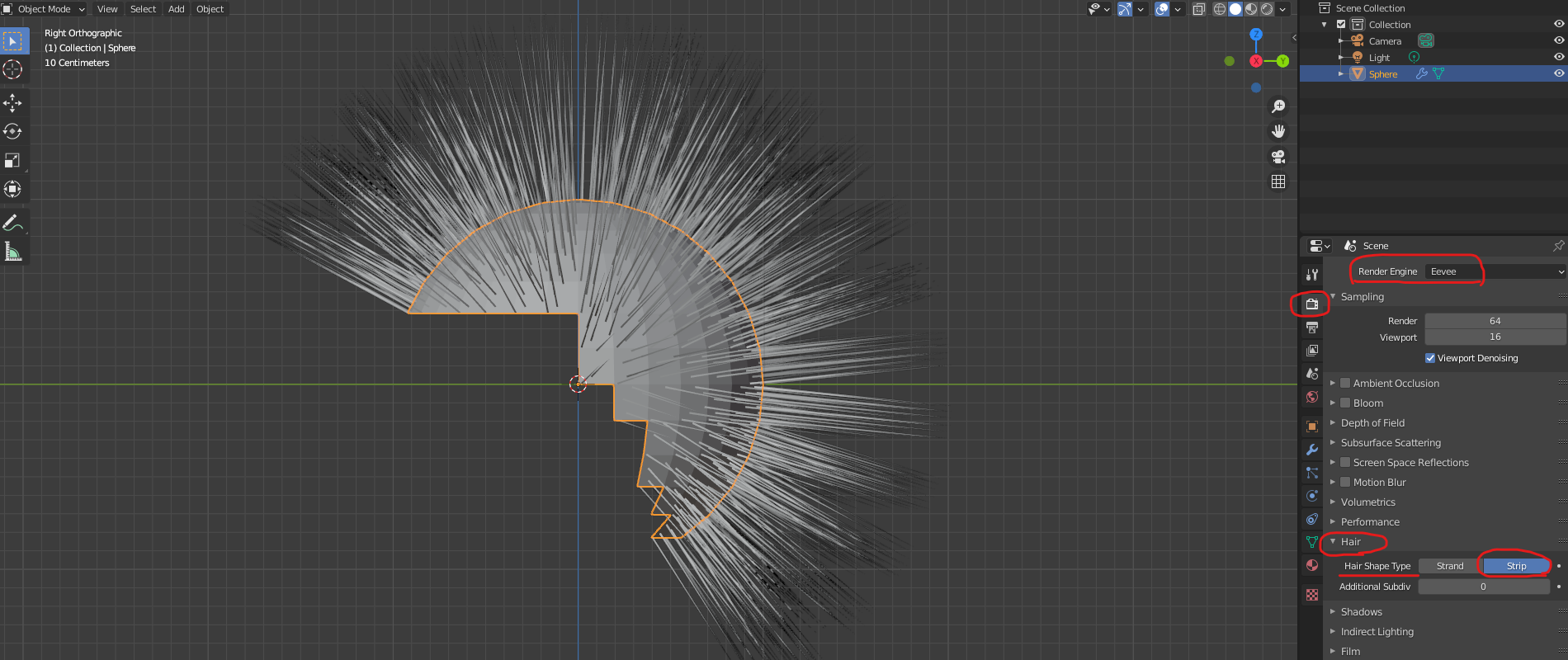 Hair Shape Type 이 Strand 되어 있는 데 Strip 로 바꾸면