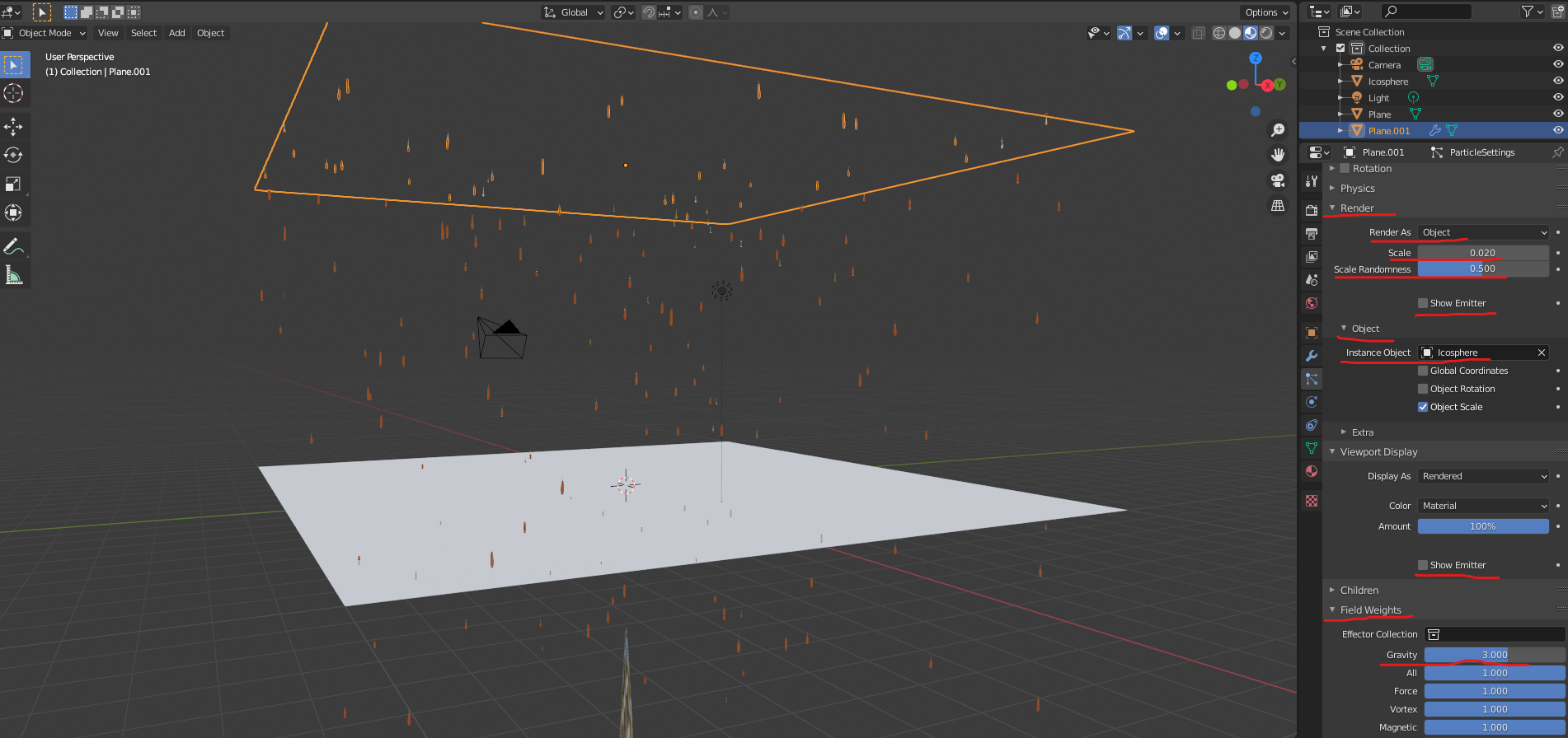 Instance Object 는 빗방울 오브젝트 Icosphere
