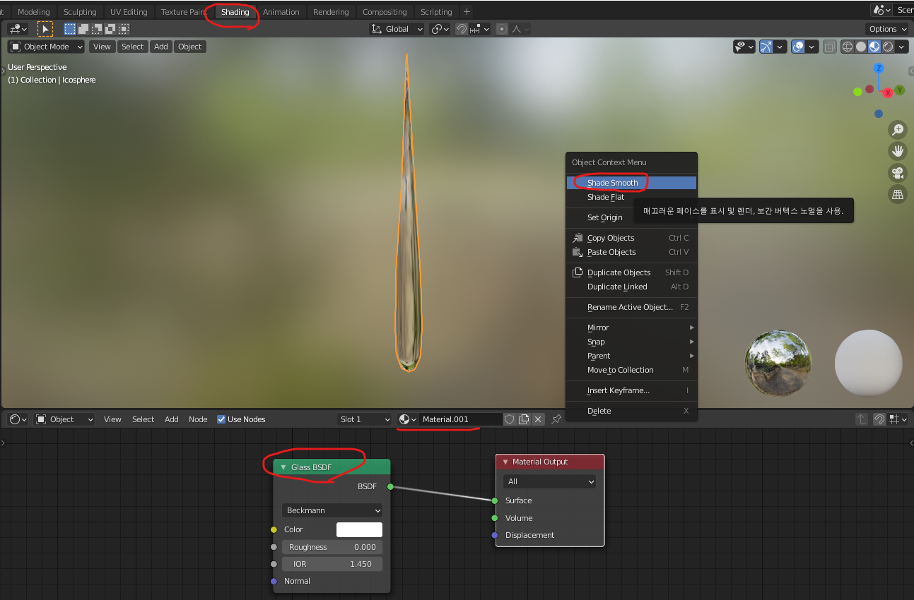 Shift+A 키로 Ico Sphere 를 추가하고