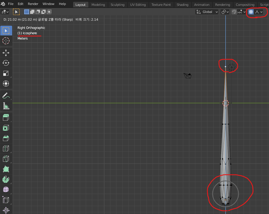 Shift+A 키로 Ico Sphere 를 추가하고