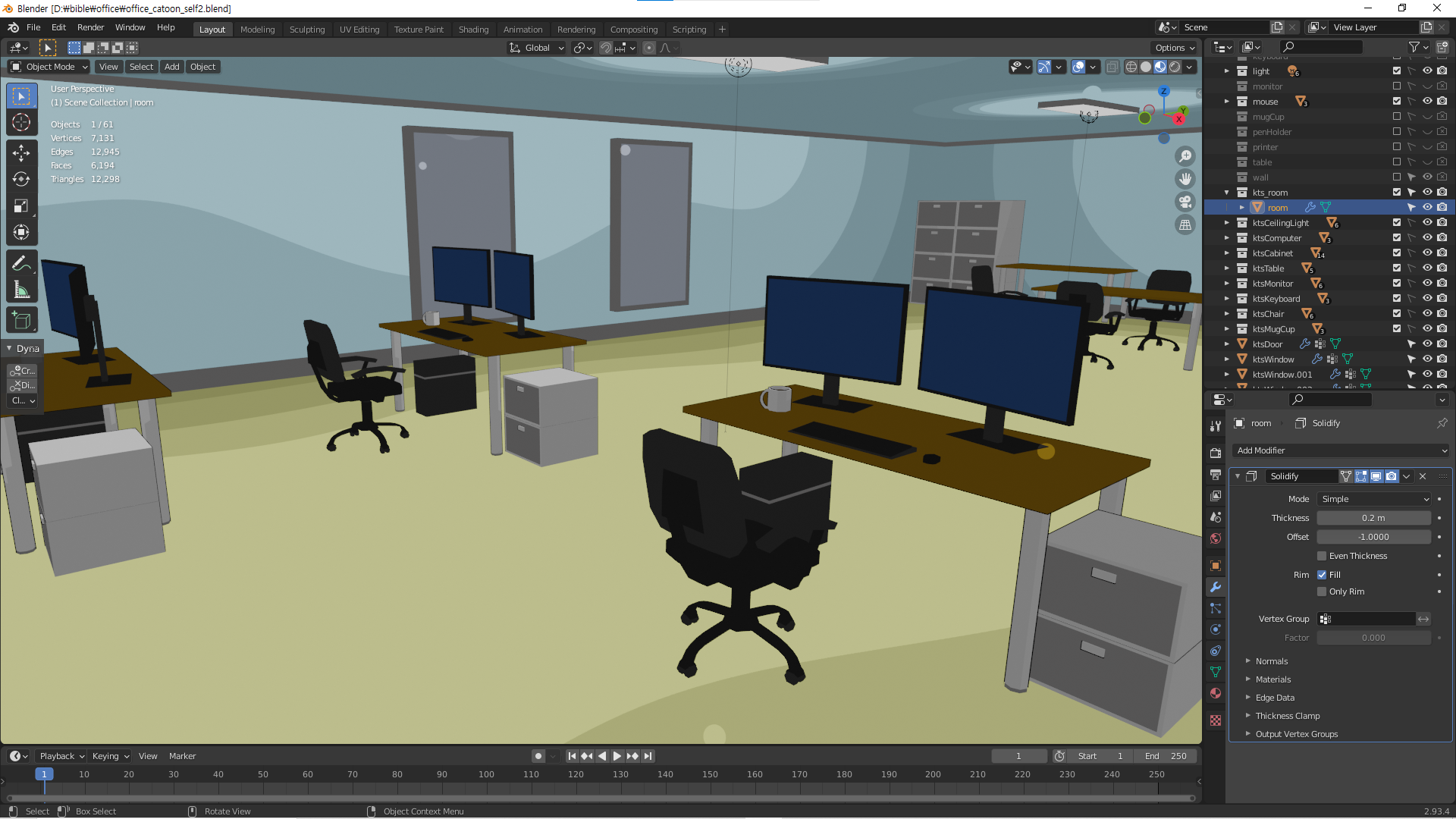 블렌더 작업 - 웹툰용 3d 오피스 배경 작업 - 캐공방TV