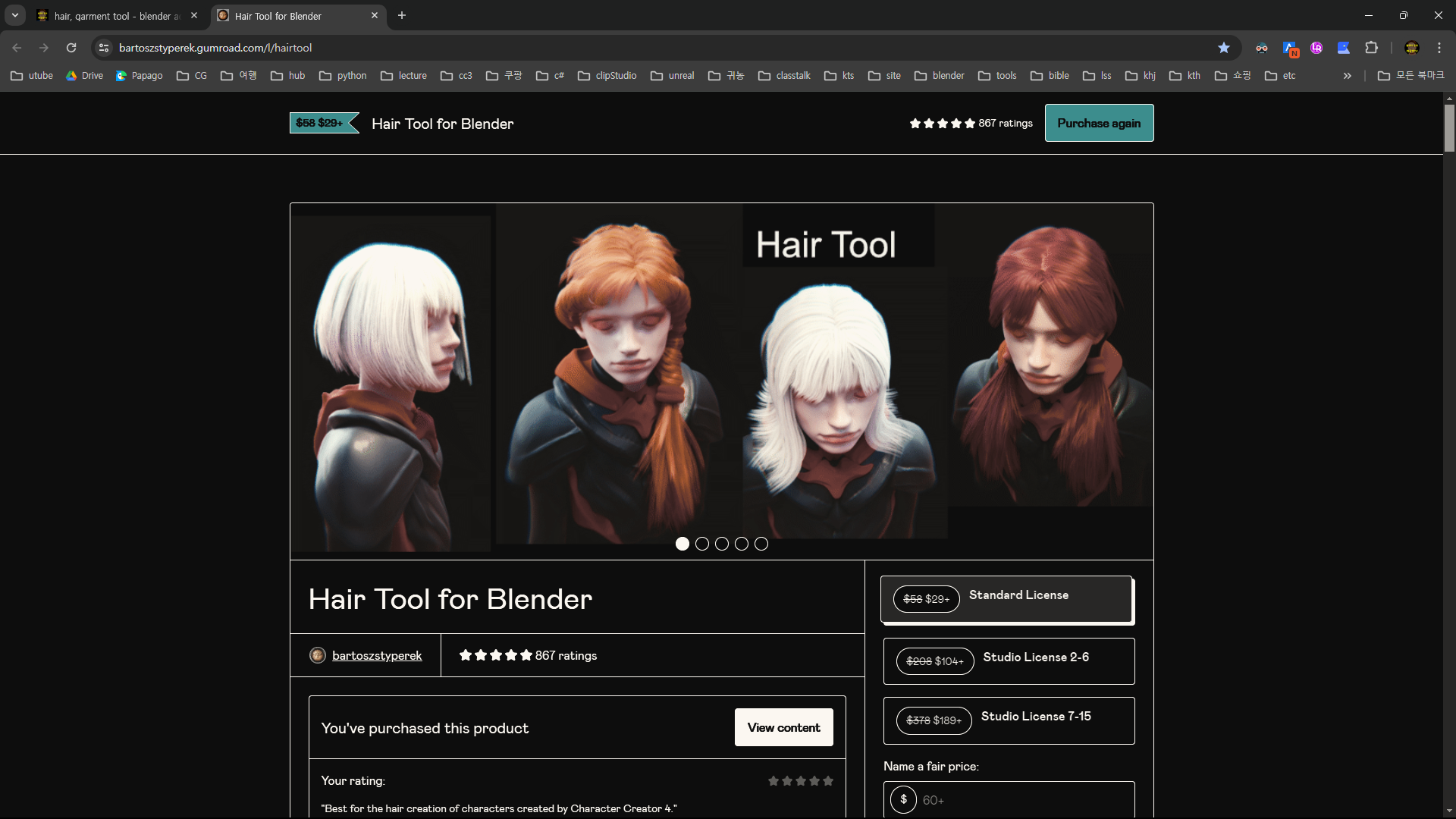 hair, garment tool - blender addon - 캐공방TV