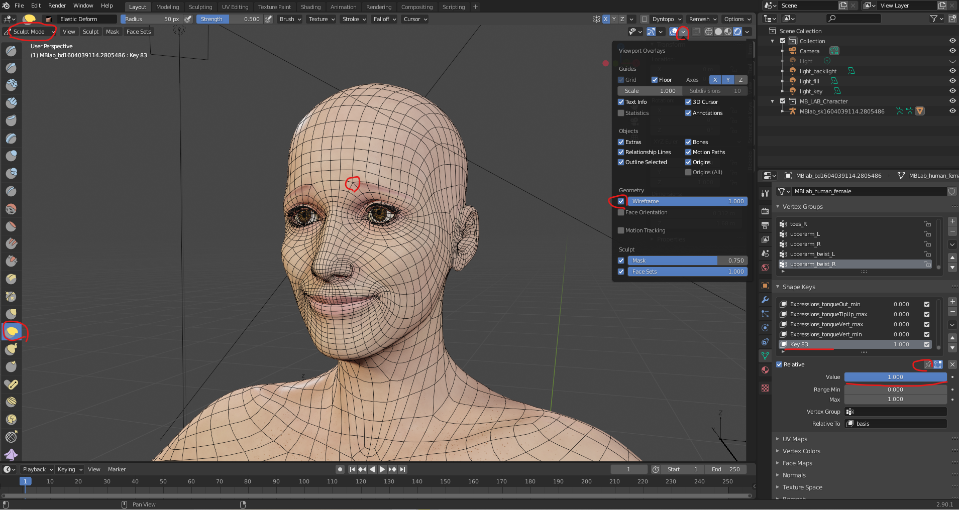 Elastic Deform 브러시로 표정을 수정하고
