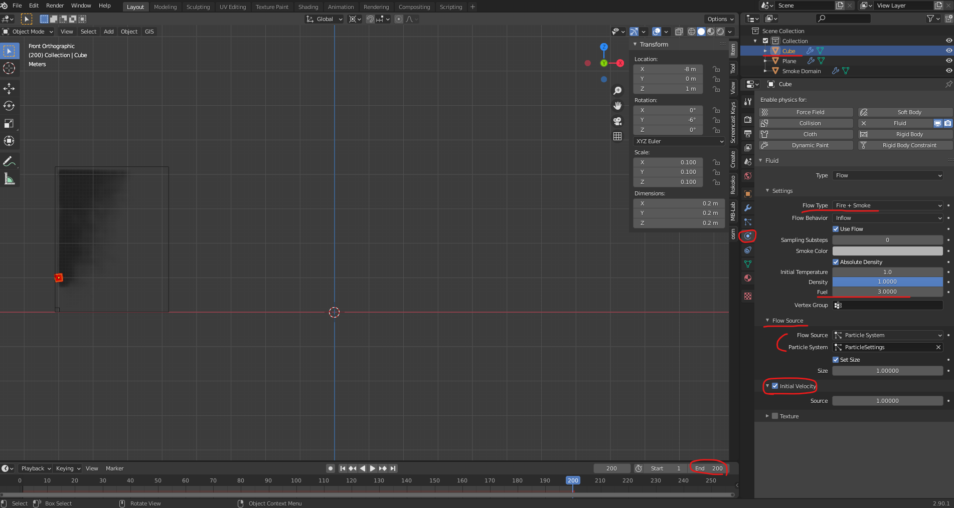 생성된 Smoke Domain 을 이동하고 크기를 조정해서