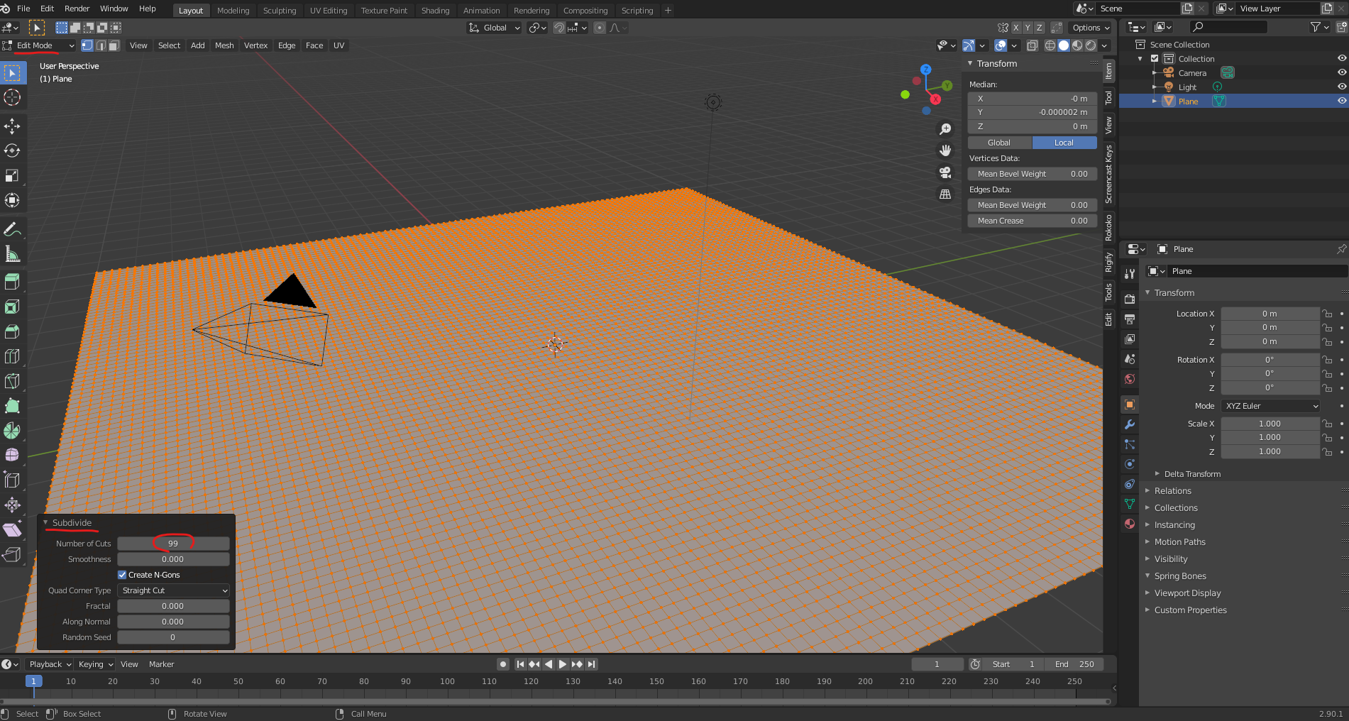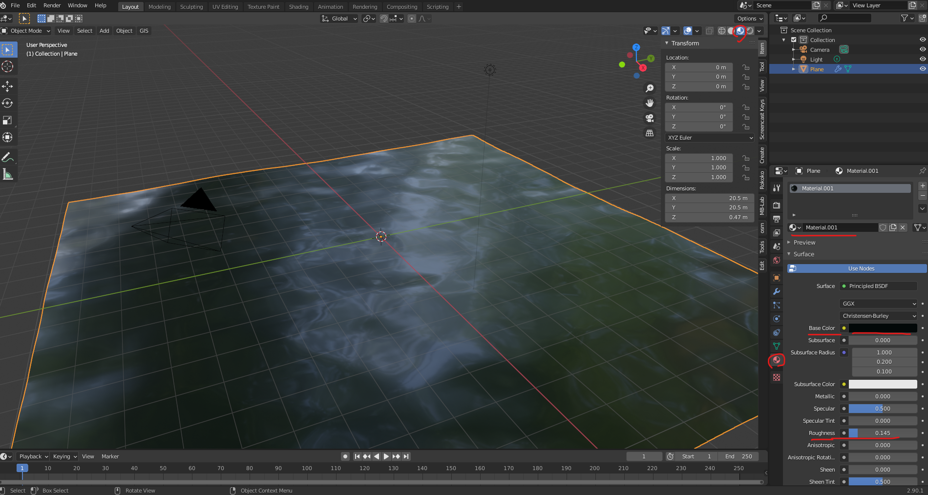 Plane 을 추가하고 10배로 확대하고