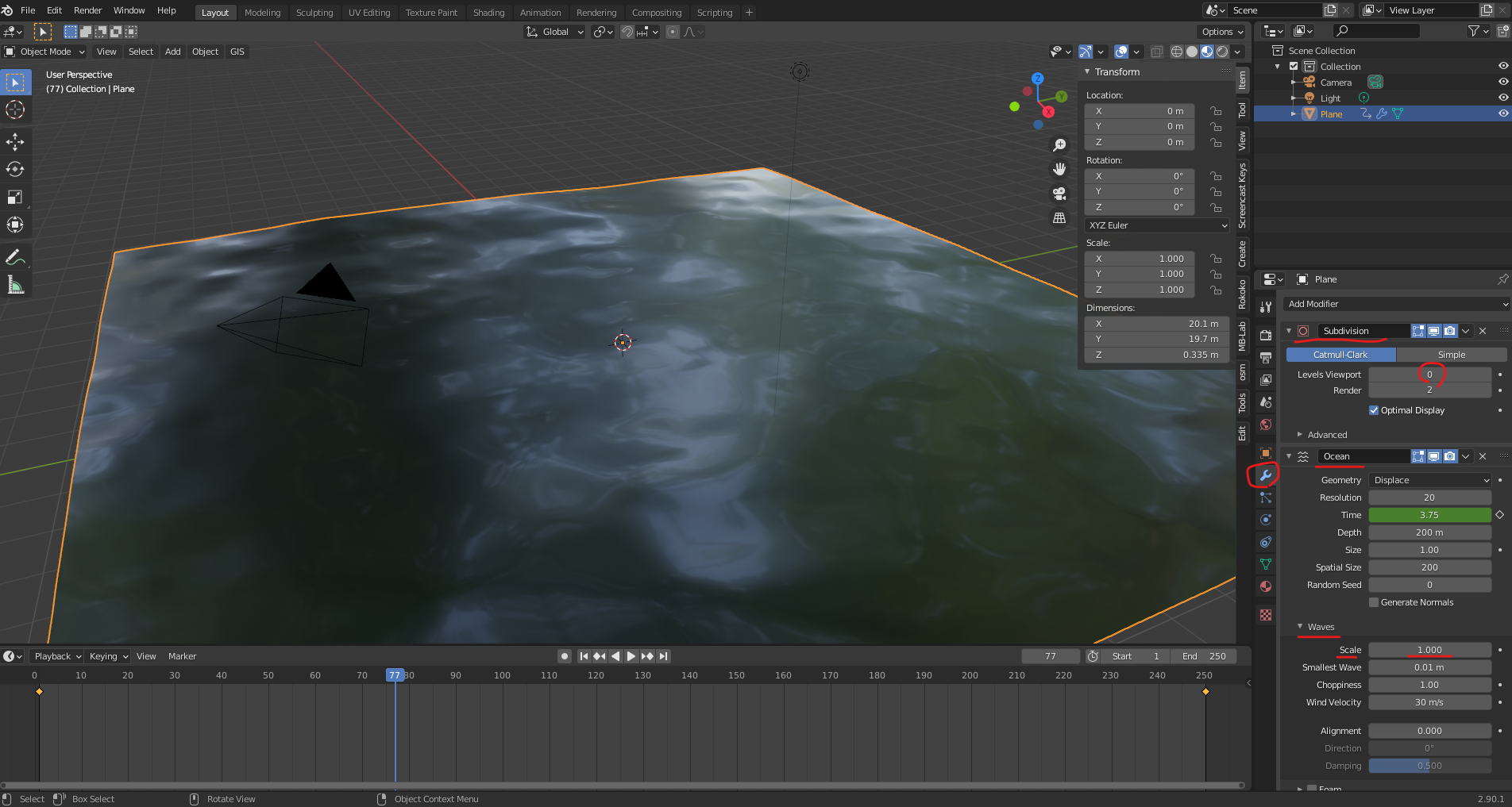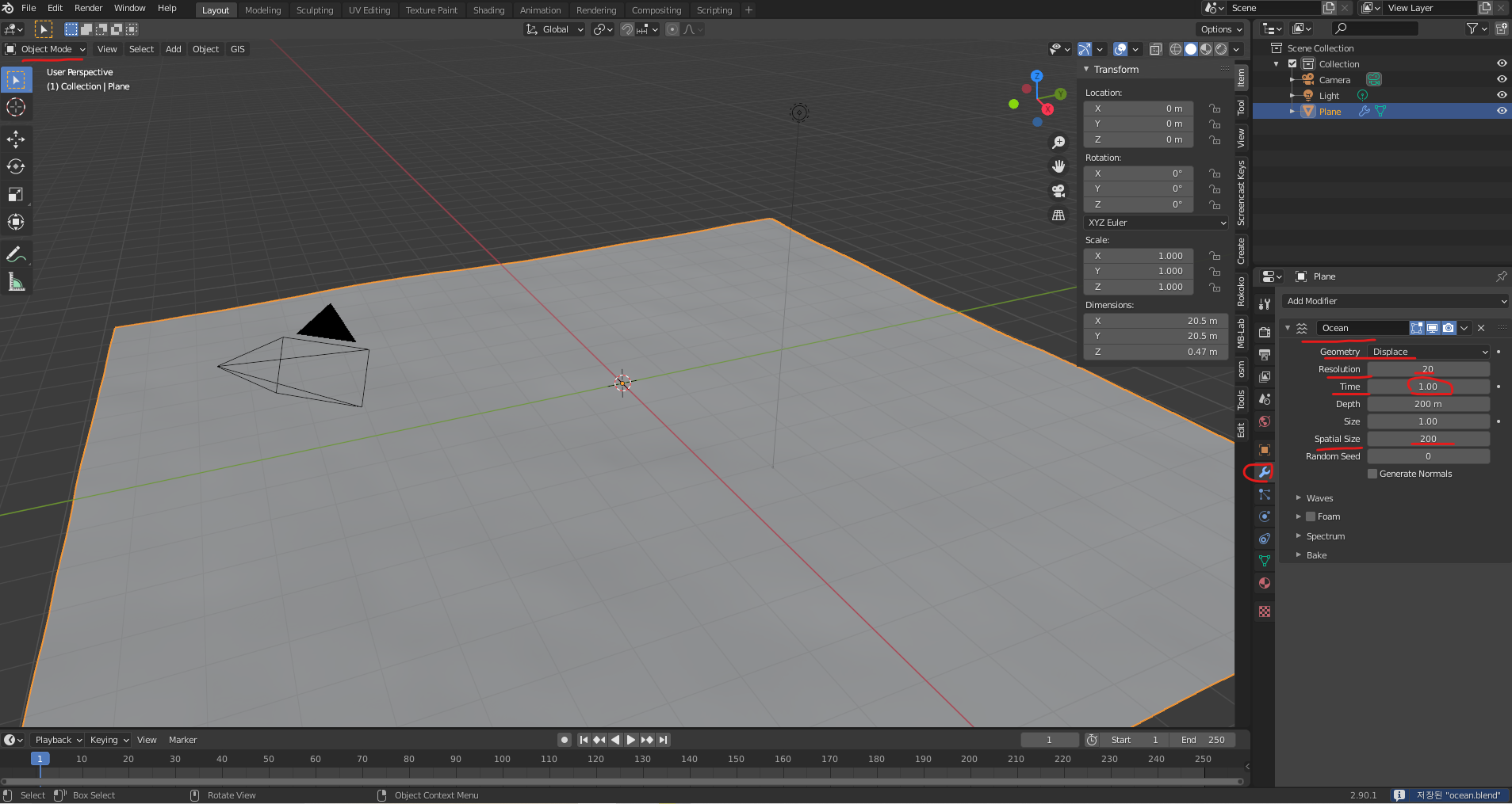 블렌더 강좌 2.90.1 - 바다 Ocean 만들기