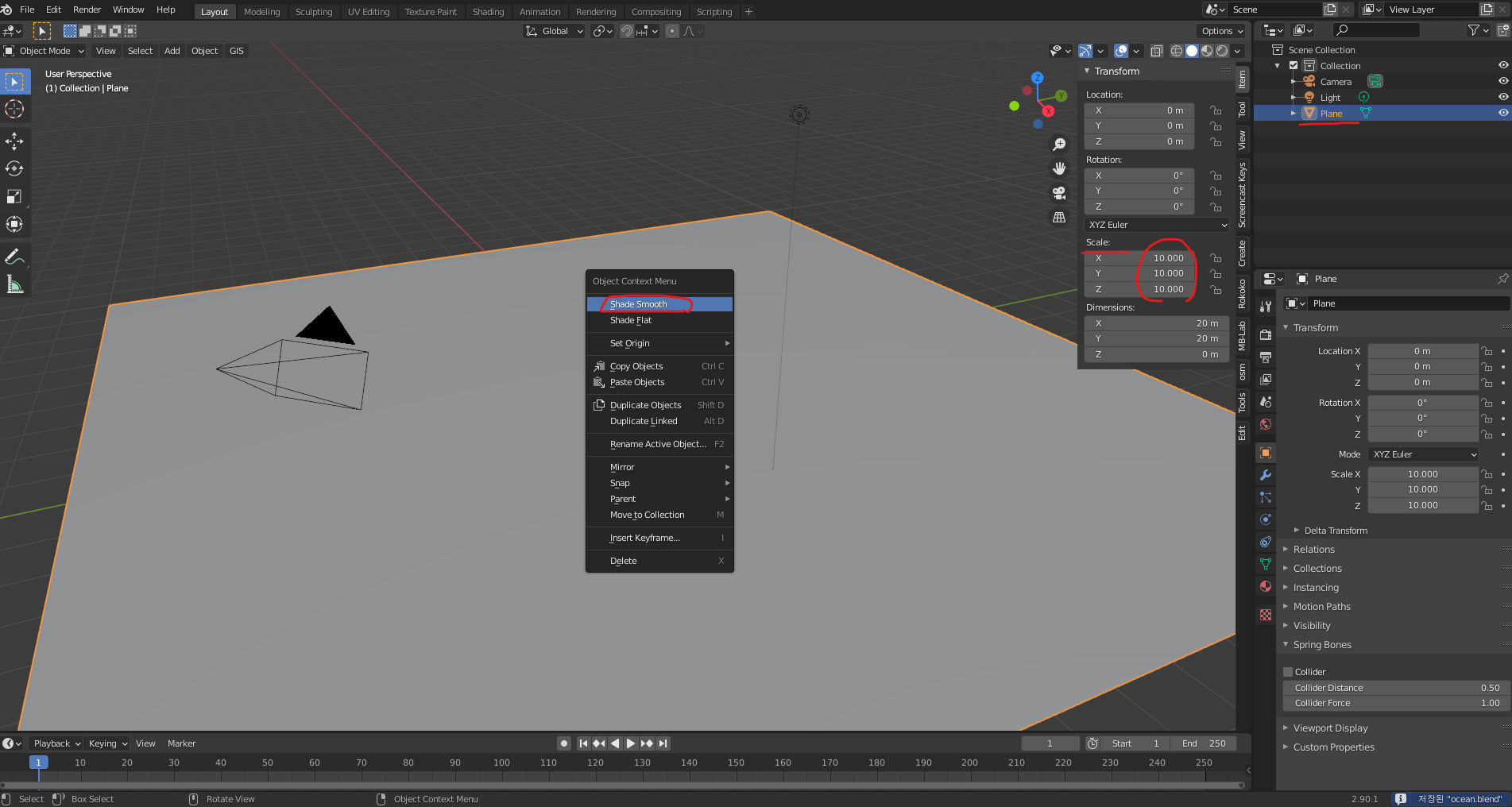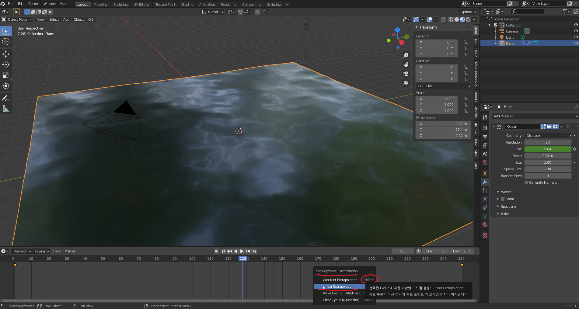 블렌더 강좌 2.90.1 - 바다 Ocean 만들기