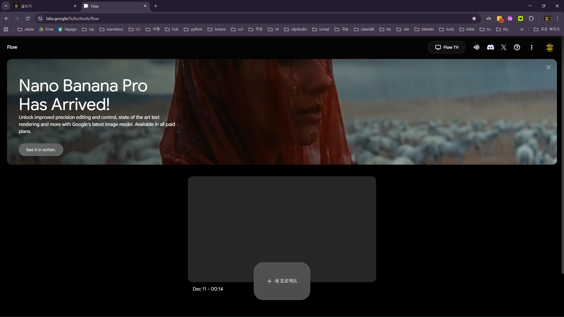 영상 제작 도구 Flow 로 만드는 과정을 설명하고 있다.