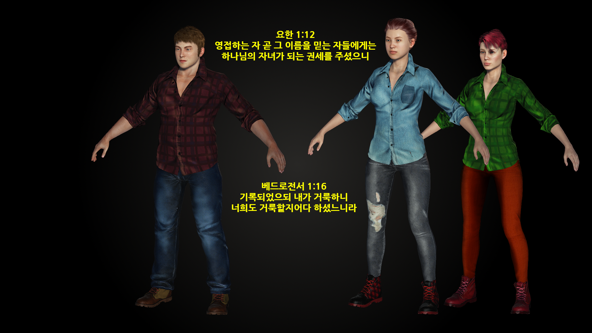 주인공 캐릭터 3명을 급조해서 만들었습니다.