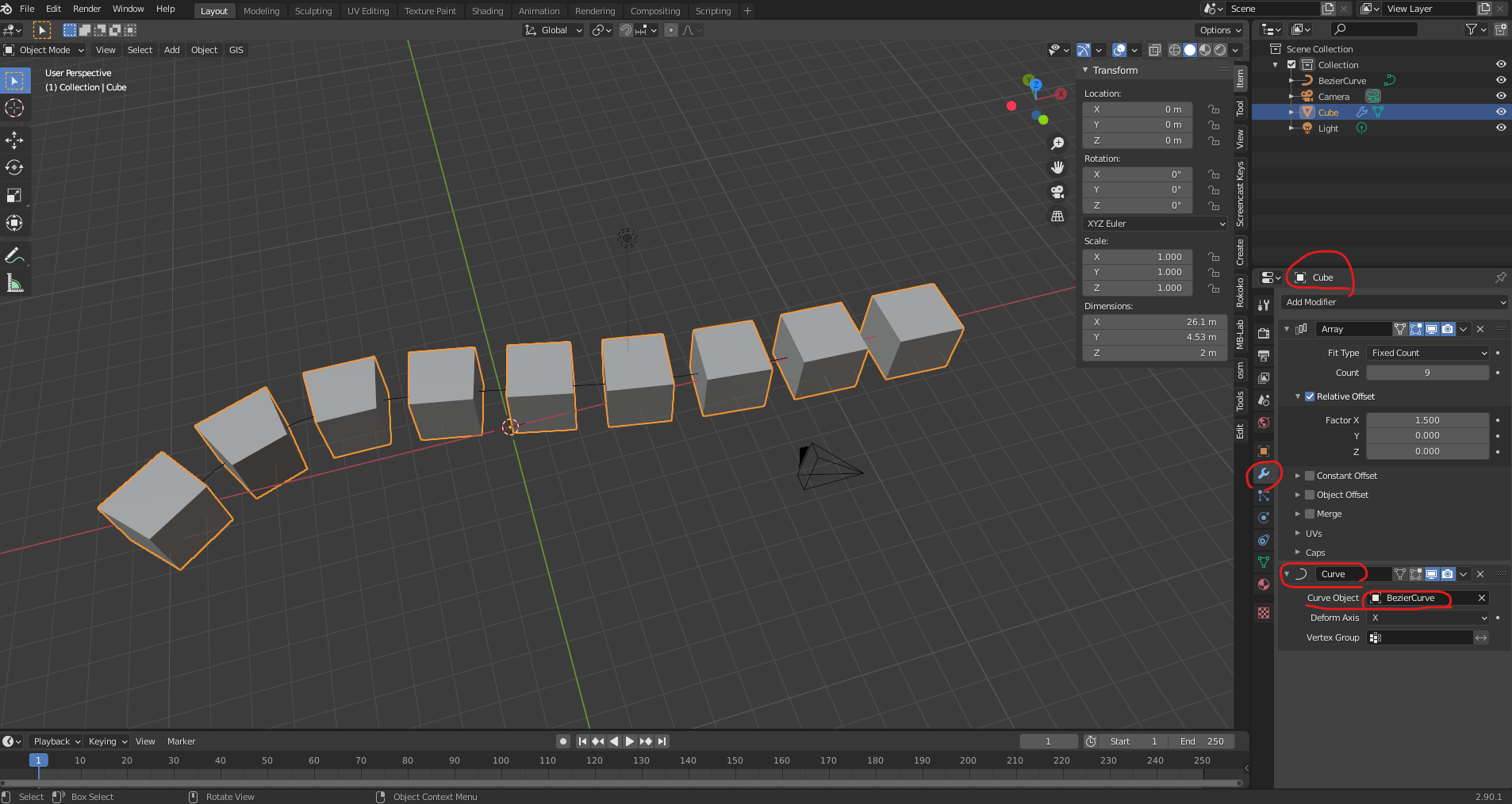 블렌더 강좌 2.90.1 - 커브와 배열을 이용한 오브젝트 배치