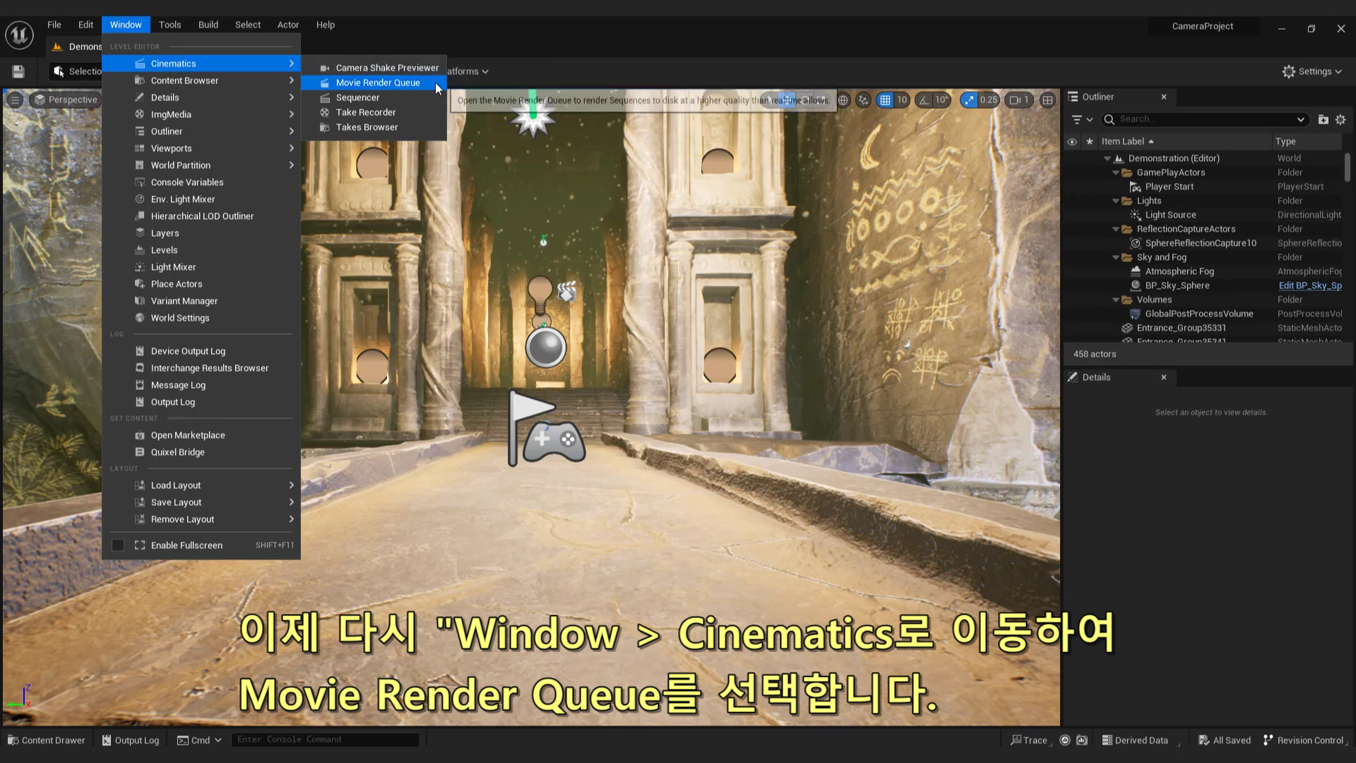 Window - Cinematics - Movie Render Queue 선택