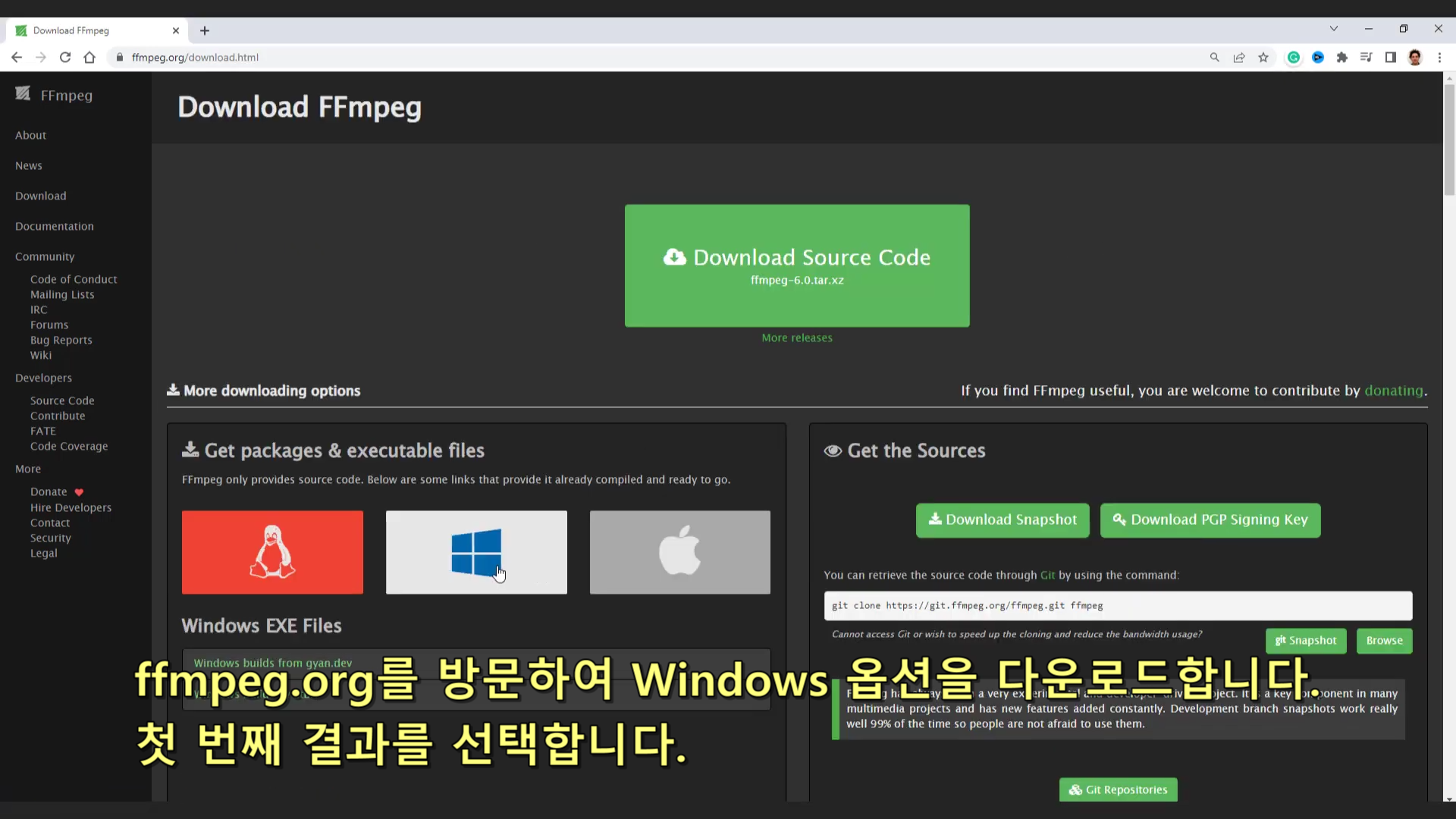 ffmpeg.org 접속